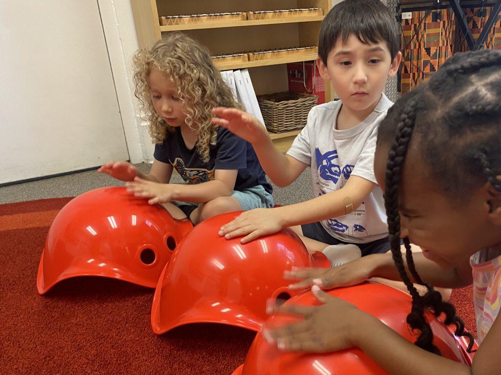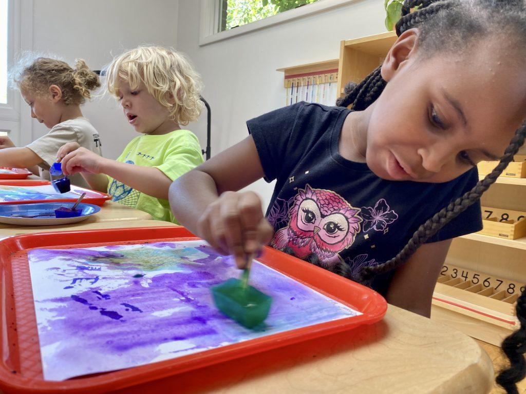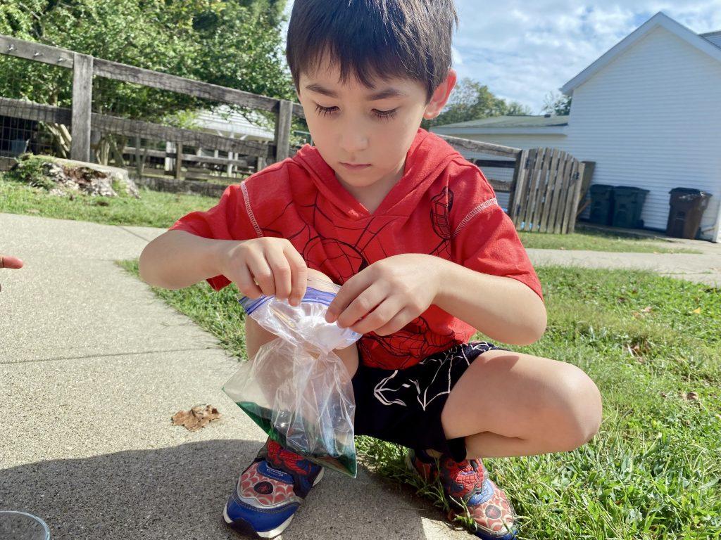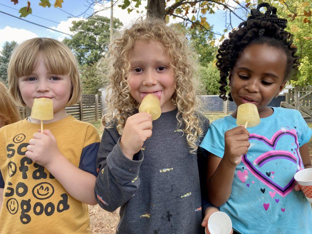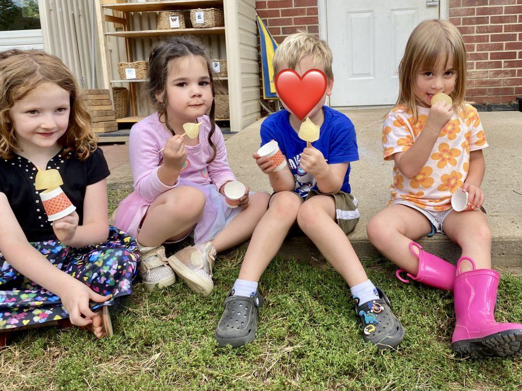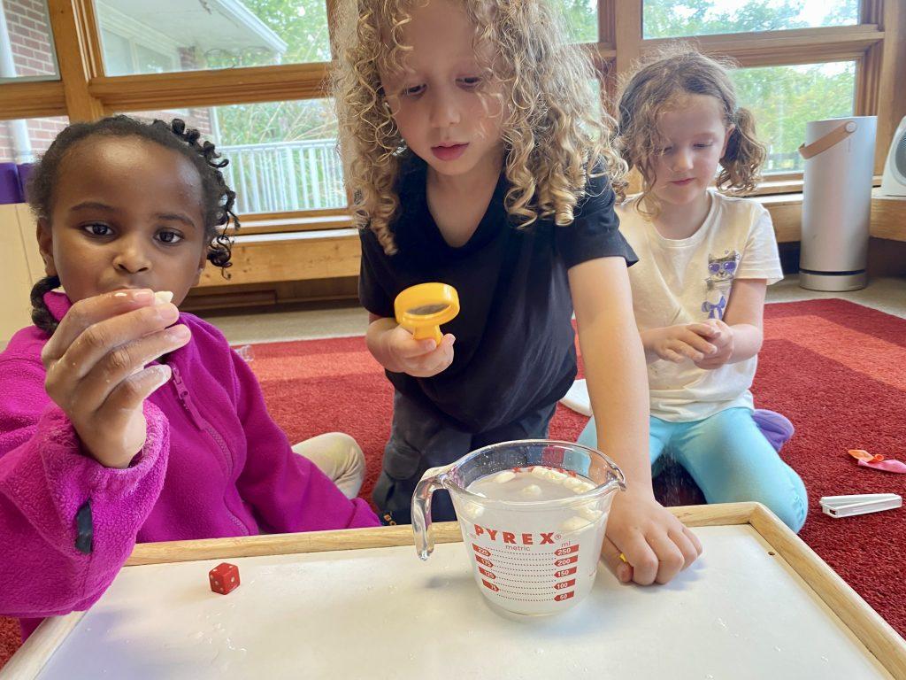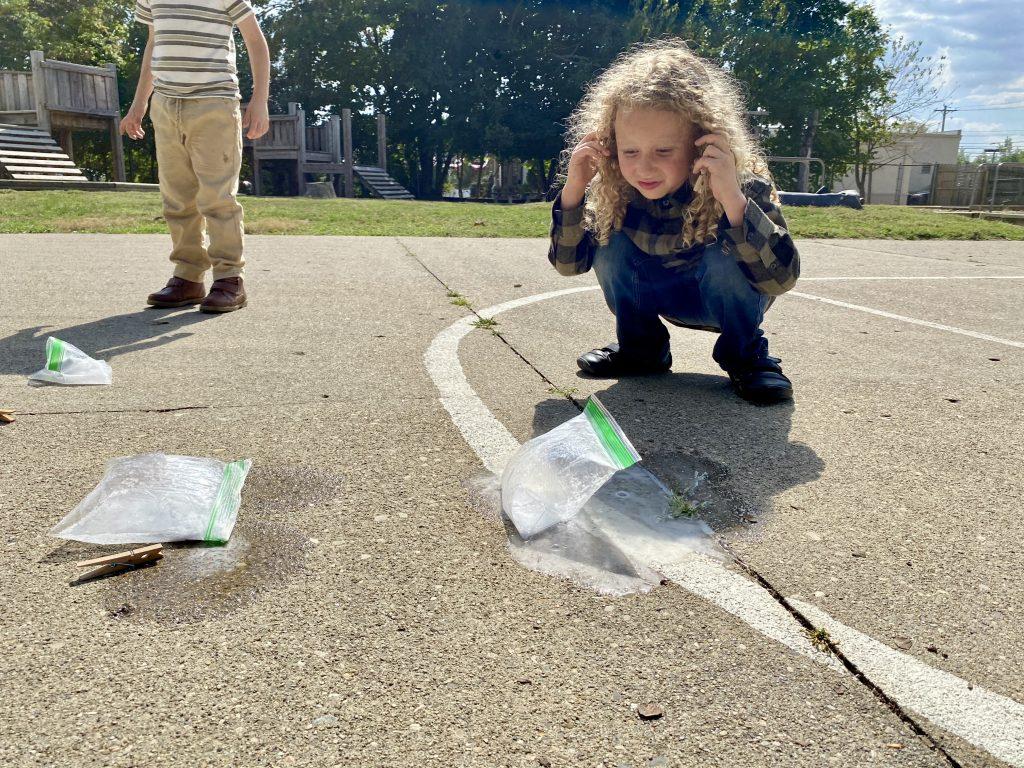 Earlier this month, Primary students got to eat something icy cold that was part of their science study, experiencing changes in matter with all five senses! Mini cups of organic white grape juice became solid after a few hours in the freezer, and quickly began melting into a liquid again as they enjoyed them under the hot sun outside. They also combined outdoor care for the environment with this science unit by harvesting tomatoes, basil, oregano, and parsley from the class garden and by blending them, transformed solid ingredients into a liquid sauce. Along with these activities, students also participated in a sink or float shelf lab. In Kindergarten Studio, the science study was extended with an exploration in density with marshmallows and water, and by creating chemical reactions with baking soda, vinegar, and baggies. If your family ends up trying any of these projects at home, let us know by tagging McGuffey Montessori!