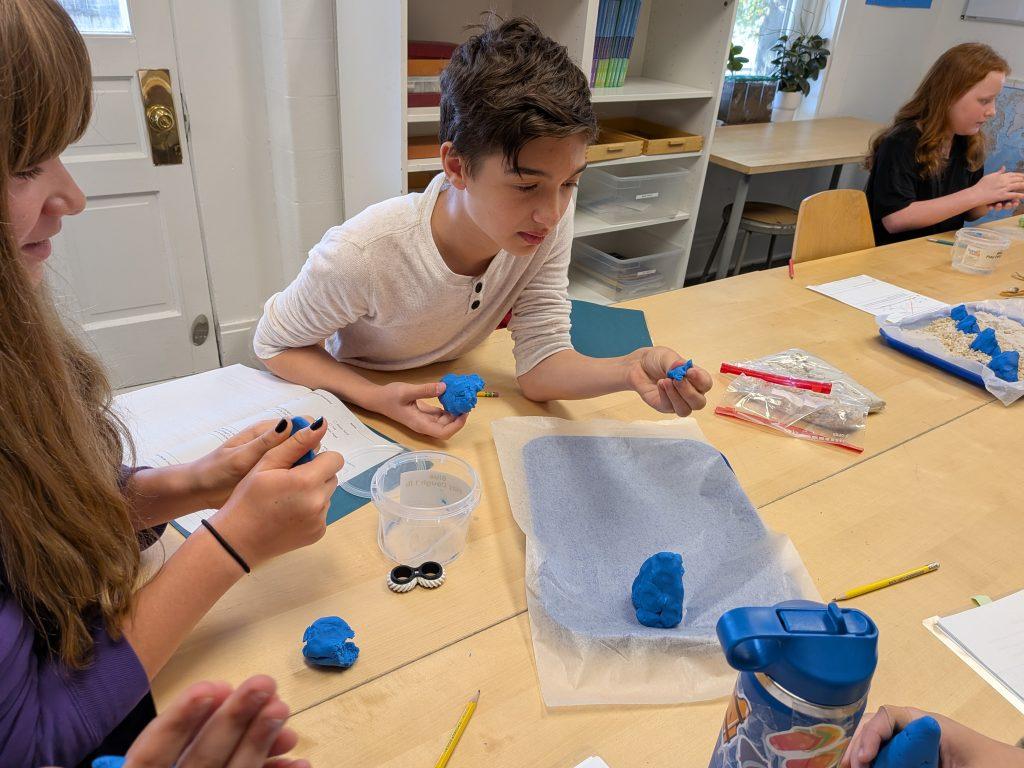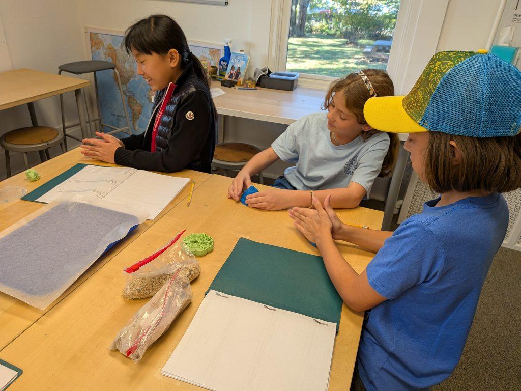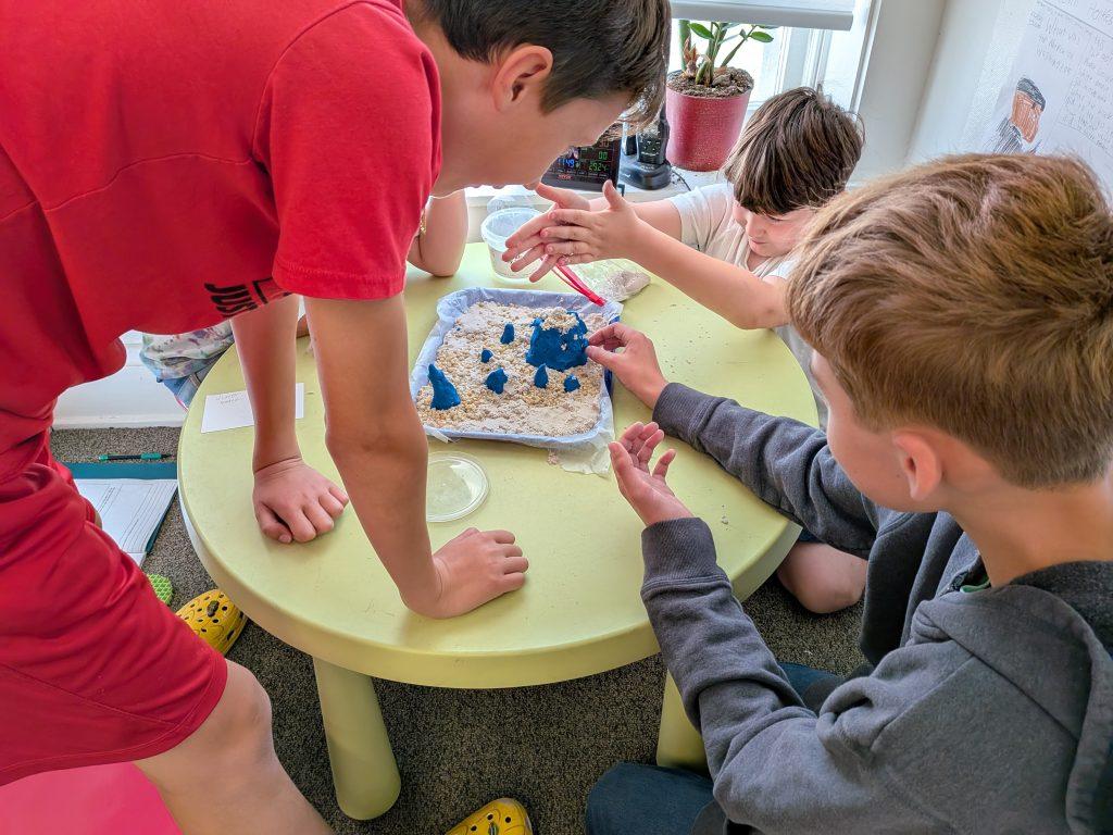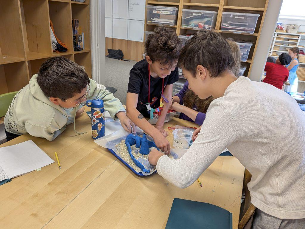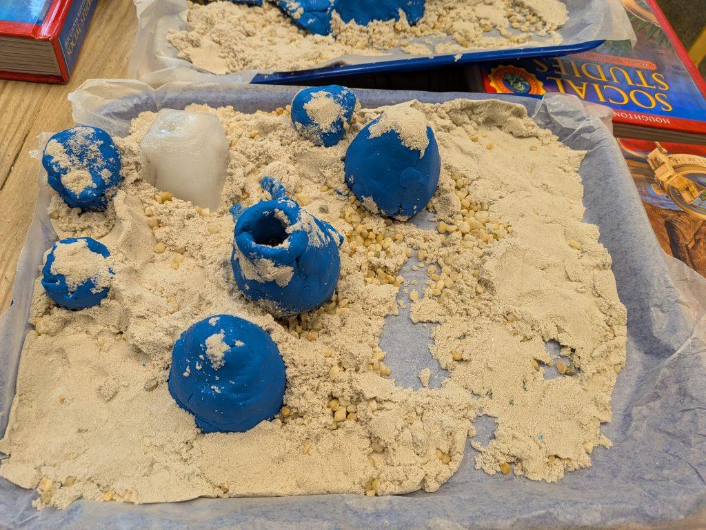 As Upper Elementary continues to study Earth Sciences, they created models to demonstrate how glaciers affect the land. Using modeling clay, kinetic sand, gravel, and a large ice cube, they observed how the movement of a glacier changes the surrounding landscape and what the landscape may look like as the glacier melts. It was a fun, hands-on activity to show how the Earth came to look the way it does.