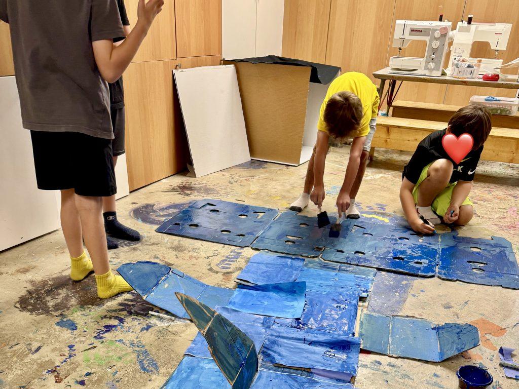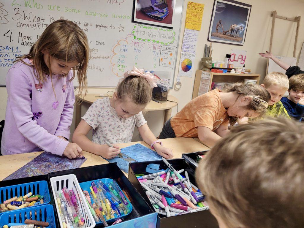 Measuring, creating, building, playing. At McGuffey, students grades 1-8 have art and music twice a week.