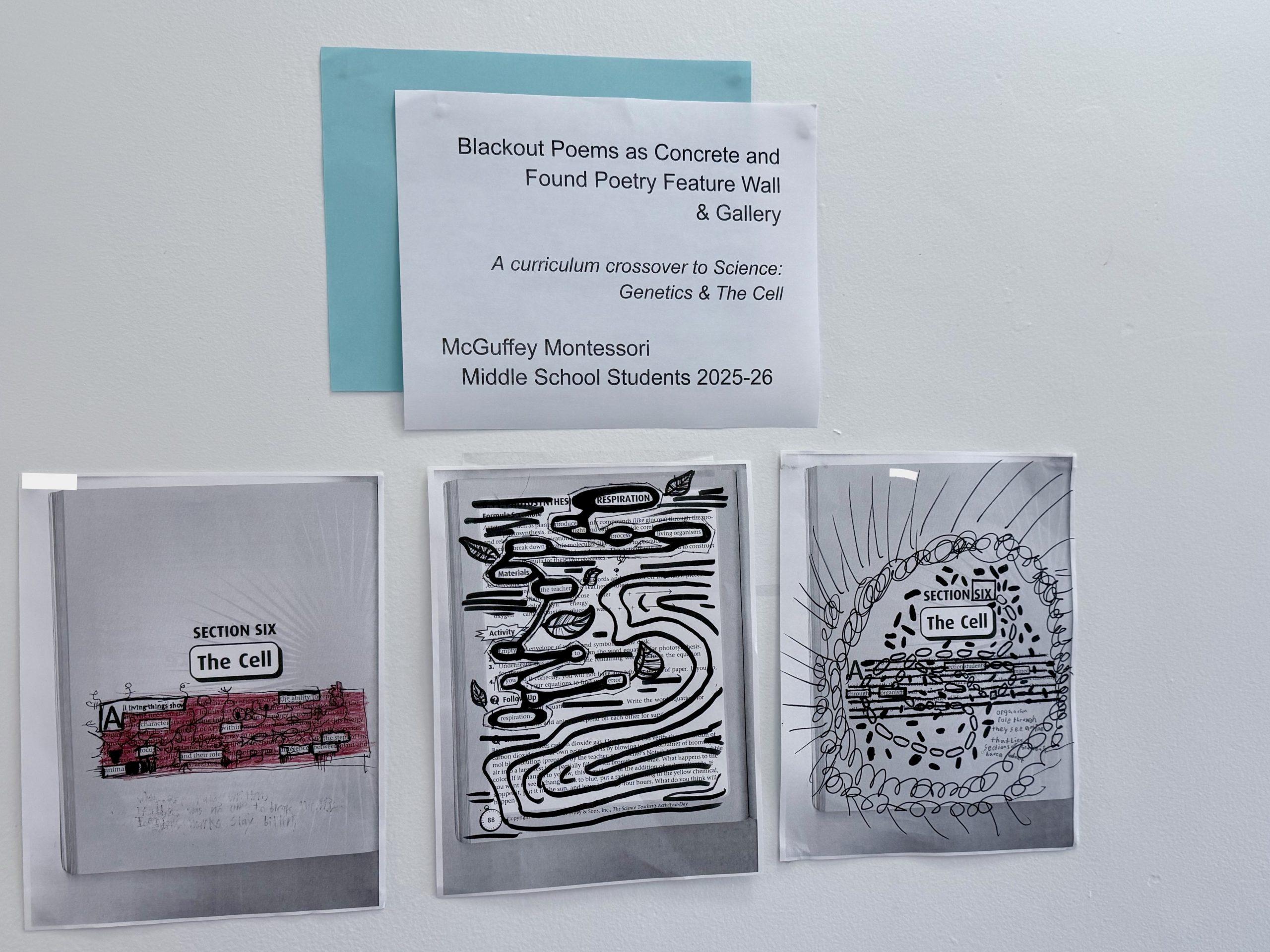 Middle School students are writing, creating, and studying poetry. They are working together to compile a list of poetic terms. Favorite poets have been identified and poems have been written in the style of famous poems. Content from their current science unit on cells and DNA is being used to black out words and create a type poetry called Blackout Poetry. The Epigram Wall is being added to daily. So Much Depends poems are being written and hung in the Orange Room. A Cloud Poem has been created by the entire class based on their summer reading book, Haroun and the Sea of Stories. During their study of the book, students wrote down one word from each chapter that caught their imagination. Those words were collected and collectively entered to form the poem. The Poetry unit will wrap up this week and lead into Short Stories.