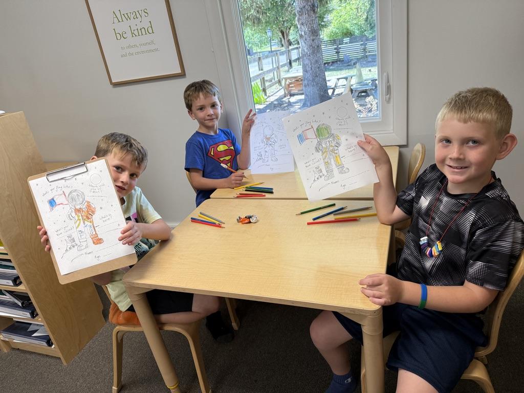 Preschoolers and Kindergarteners in the Primary classroom took a nature walk to make nature bracelets. Our campus provides ample area for exploration and the students gleefully added found objects to their bracelet, carefully adding items that had already fallen onto the ground, not picked from plants. Primary students also got to the meet with their Upper Elementary partners for the first time this year. They began designing a giant mobile based on the work of Alexander Calder.