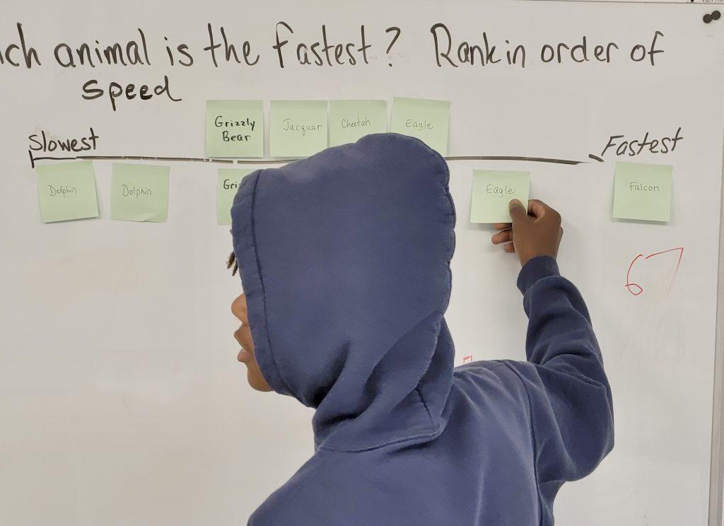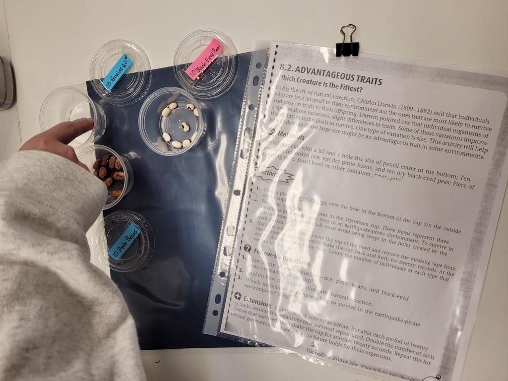Middle School students recently participated in zoology lab activities. They predicted outcomes on natural selection and a peppered moth, advantageous traits and creature fitness, as well as primate adaptations and the importance of the opposable thumb.